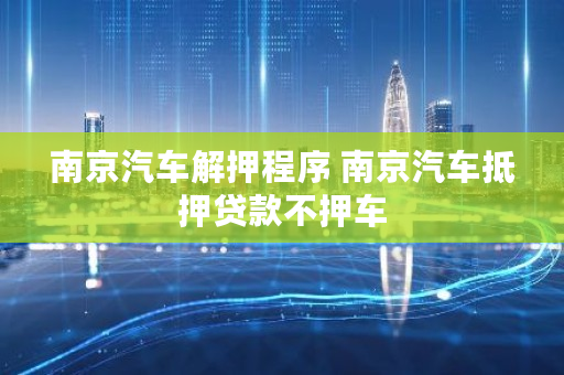 南京汽车解押程序 南京汽车抵押贷款不押车