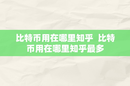 比特币用在哪里知乎 比特币用在哪里知乎最多