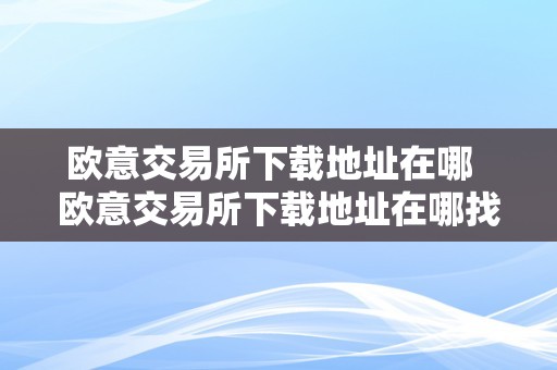 欧意交易所下载地址在哪及欧意交易所下载地址在哪找
