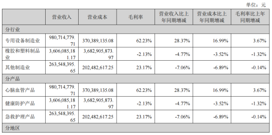 亏损的蓝帆医疗,也在持续加码心脑血管业务和护理业务,旨在培育新的盈利点。2023年,心脑血管产品实现营收9.81亿元,同比增长28.37%;但急救护理产品实现营收2.64亿元,同比下滑7.06%。