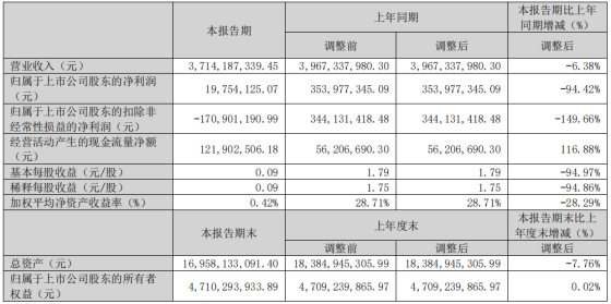 钧达股份一季度扣非净利-1.71亿元同比降150%