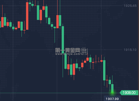 截至发稿,现货黄金价格报1908.00美元/盎司。
