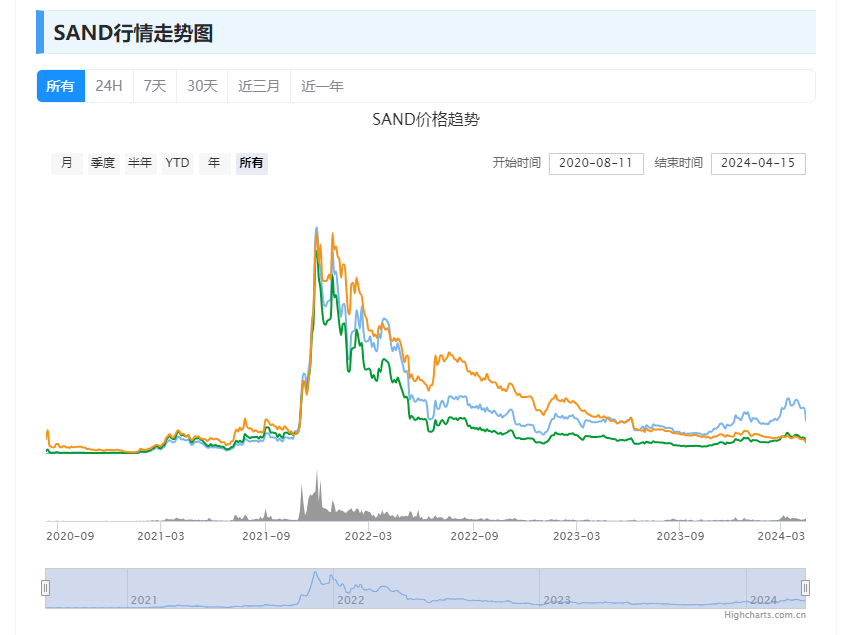 sand币今日行情价格走势图 sand币最近一年的历史价格走势分析