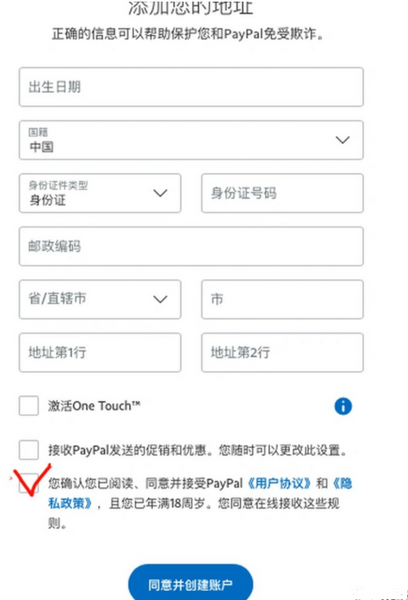 4)填写邮箱(就是PayPal账号)、姓名(必须和身份证一样,中文),设置账号密码;