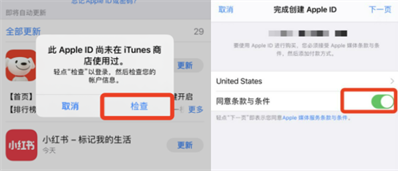 1.打开AppStore,退出原有的账户,然后登录刚刚注册好的海外账户。由于是**登录新ID,系统会出现一些提示信息,请点击检查,并勾选同意以继续。