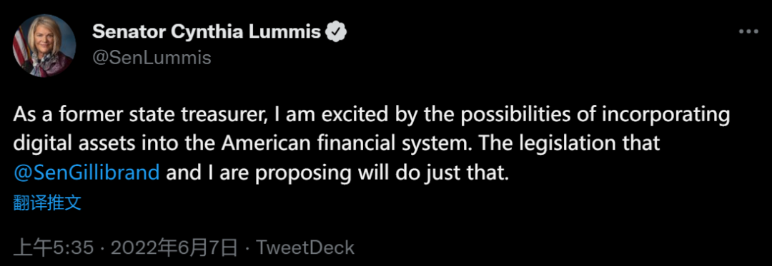 不过值得关注的是,美国参议员 Kirsten Gillibrand 和 Cynthia Lummis 本月提交了美国加密货币监管框架相关法案,其中包括:
