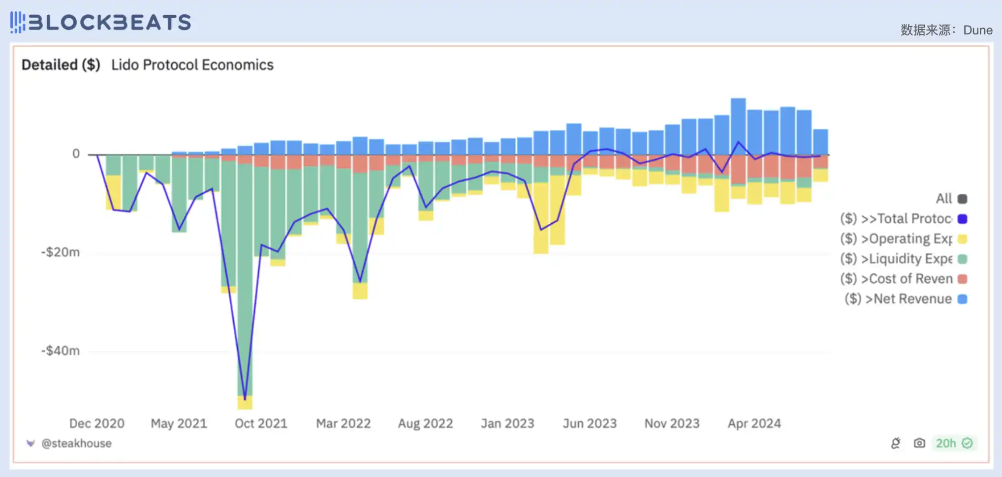 过去,市场对 Lido 的定位是流动性质押赛道的**龙头,但随着减少**化叙事以及再质押赛道的出现和发展,Lido 的地位受到了动摇。加之市场对协议创收以及**价值回馈的重视程度愈发强化,LDO 作为又一个没有价值捕获的主流治理**,也在收到投资者的质疑。