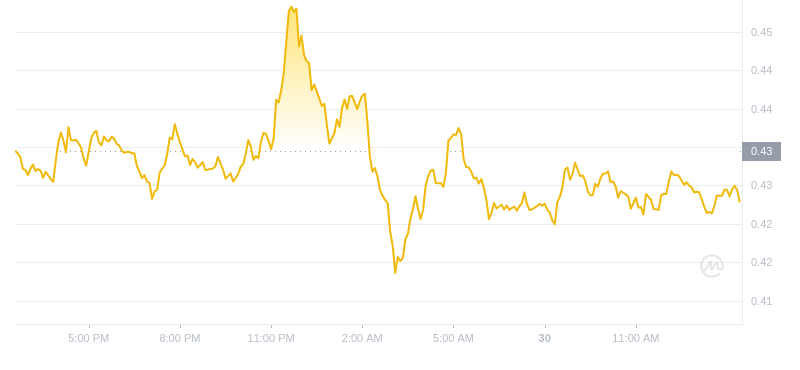 截至当前,Fantom (FTM) 的价格为 0.4228 美元,24 小时的交易量为 1.44 亿美元。