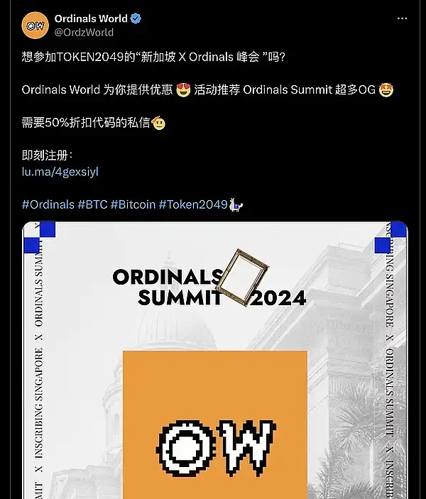 OW @OrdzWorld 每日整理 BTC 生态**和**信息。Ordinals World(OW) 团队 base 新加坡,在多个 Web3 领域进行了战略布局,专注于 BTC 生态以及 L2、Defi、Gamefi、AI、Metaverse 等领域。