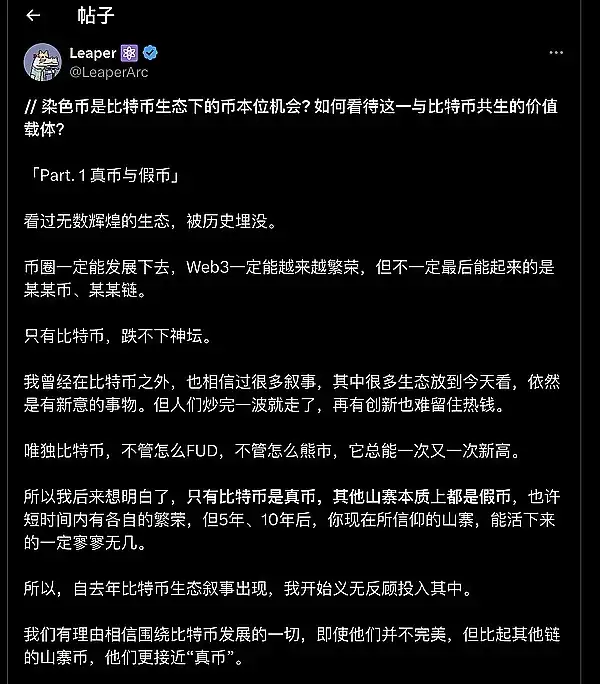 ● 染色币通过聪本位定价,与比特币共生,助玩家囤积比特币,推动币本位理念,促进币圈与比特币共同繁荣。by @LeaperArc