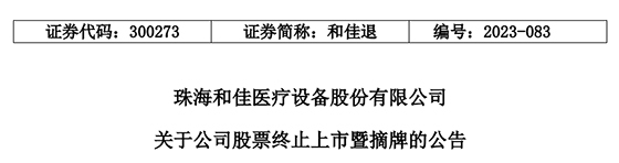 和佳退终止上市摘要,数据来源:和佳退公告