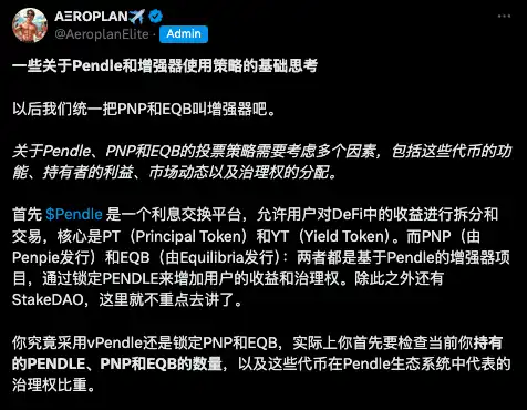 2. 关于 Pendle 和增强器使用策略,@AeroplanElite