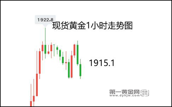上周尾盘黄金一改周内**走势,多头反击从1900关口大涨至1920一线;本周周一亚盘,金价反弹不破1920美元后回落,截至发稿,报价在1915.1美元/盎司。