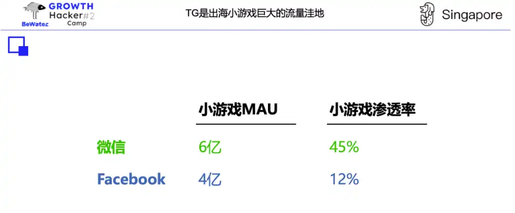 ** 是出海小游戏巨大的流量洼地,未来渗透率、用户或出现戴维斯双击。** 小游戏形态正在不断进化。大家会觉得现在小游戏很卷了,流量成本也很贵。针对小游戏的发展前景我列出了这张图,渗透率方面,可能微信的 45% 很难到,但我认为可以超过 Facebook 的 12%。