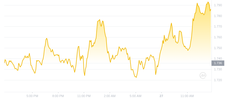 截至 2024 年 9 月 27 日 13 点,Optimi** (OP) 的**价格为 1.78 美元。24 小时的交易量为 1.55 亿美元,其价格在过去 24 小时内上涨了约 2.95%。