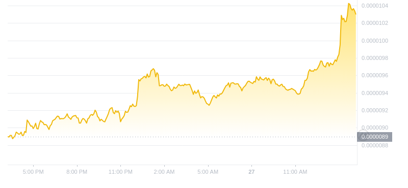 Pepe 在过去 24 小时内上涨了 15.2810043%。