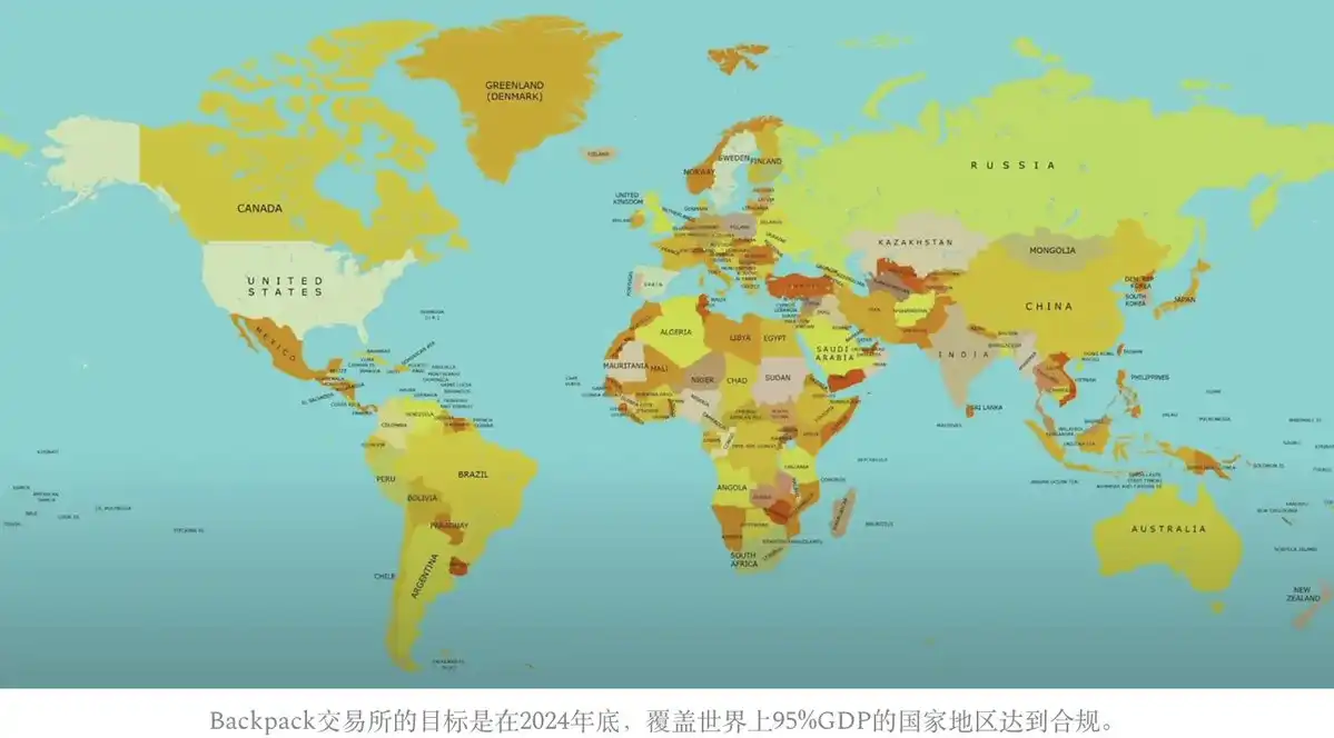 到年底,如果我们能在美国合规运营,将能够合法接触到占全球 95% GDP 的**和地区的用户。这与我在去年 Solana Breakpoint 展示的世界地图一致。我们在合规方面进展顺利,目标正在逐步实现。