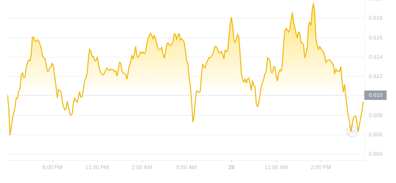 截至目前,Flow (FLOW) 的价格为 $0.6094,成交量为 $2057 万。
