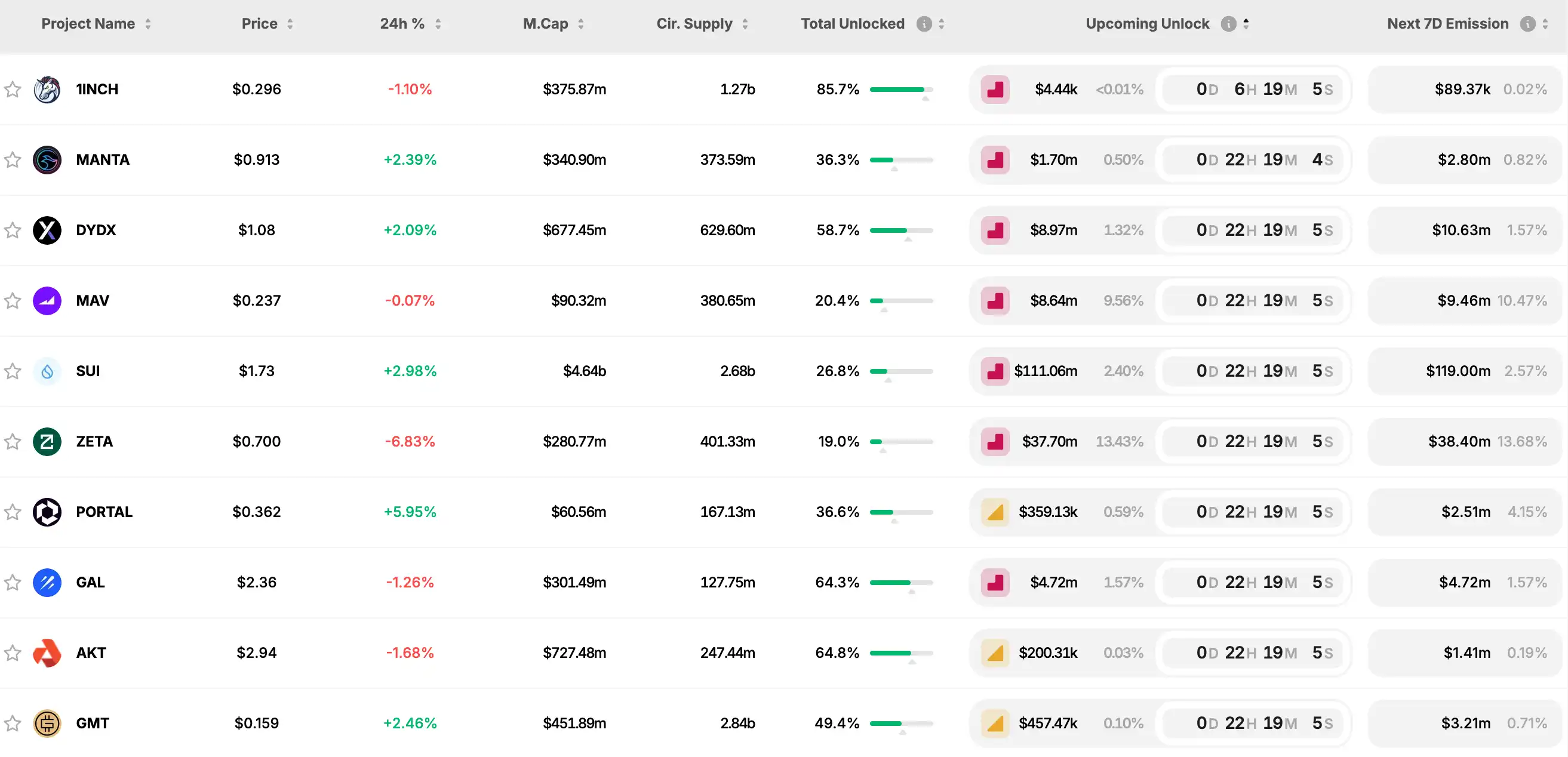 3.SUI、OP 等**将迎来一次性大额解锁,价值近 3 亿美元