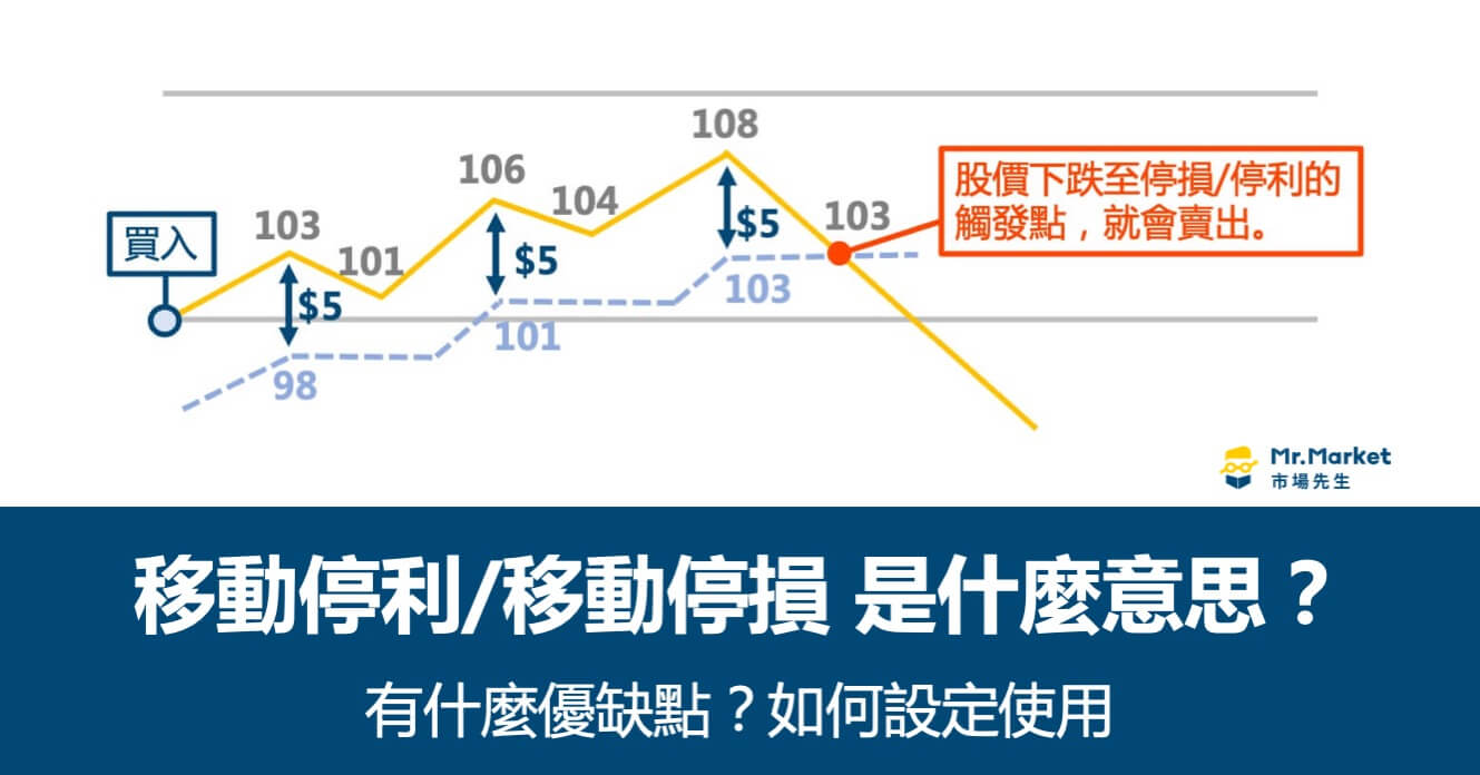 投资人事先设置好触发点,股价上升时,这个触发点就会跟着上升,但当股价下降,触发点就维持不变,而当股价下降到触发点的价格,即会触发出场,因而止盈/止损(自动锁住利润、停止损失)。
