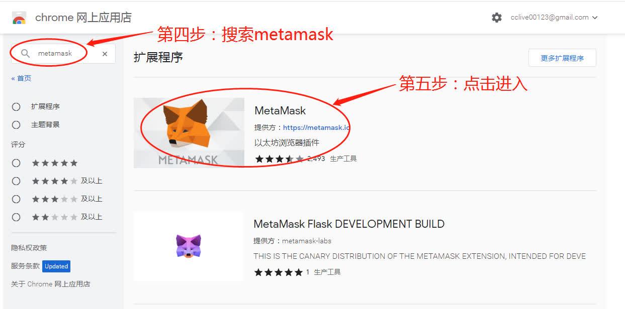 我个人使用小狐狸在电脑上比较多,就是在浏览器安装插件,谷歌、火狐等浏览器使用。比如在谷歌浏览器的网上应用商店,搜索metamask,找到小狐狸钱包,添加至chrome,即安装成功。步骤如下: