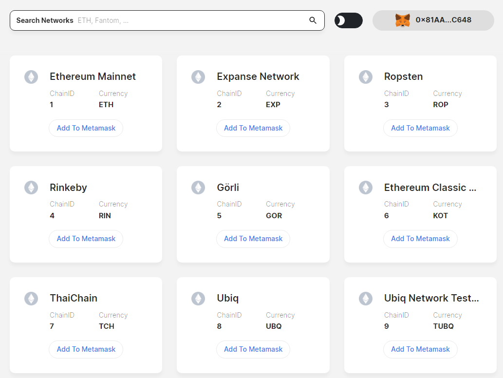 使用chainlist添加小狐狸钱包各个链