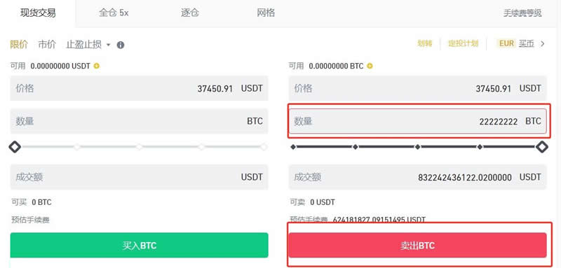 8、填写卖出数量,点击【卖出BTC】即可完成BTC币置换为USDT的操作