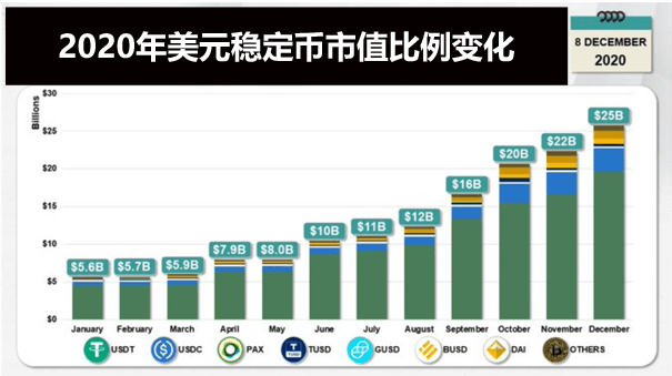 稳定币有很多种,目前稳定币在全球加密货币市场的规模已经非常巨大,美元稳定币并非只有有USDT,还有受监管的USDC、BUSD、PAX、DAI等合规币种。