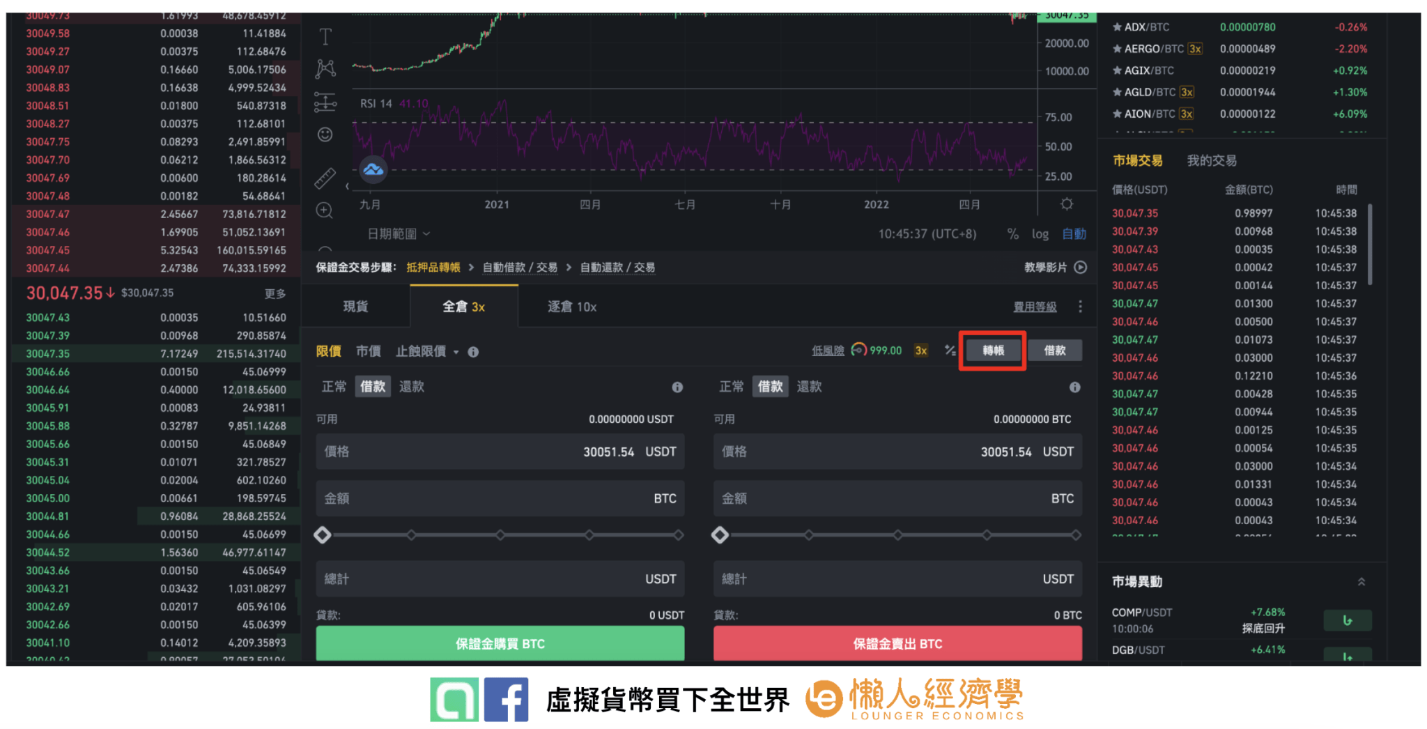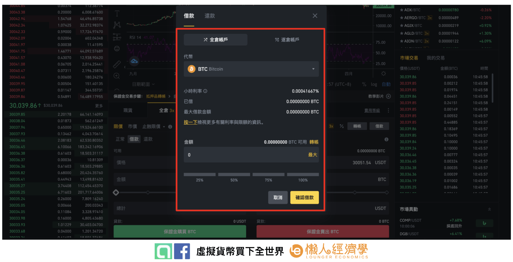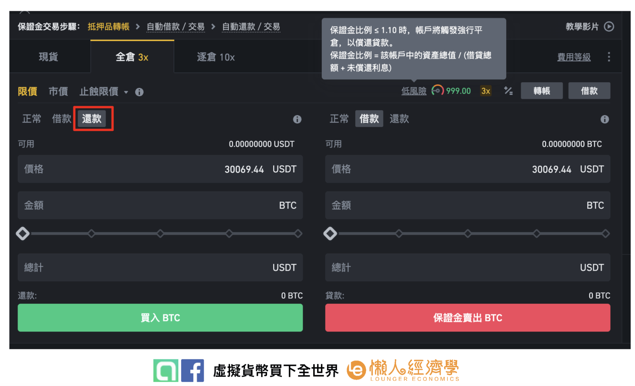 交易:在借入资产后开始交易,杠杆交易的交易介面与现货交易相同。