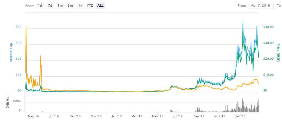 目前为止一切正常,2016 年 5 月 24 日,Lisk 主网上线,**价格在 20 美元至 40 美元之间波动。