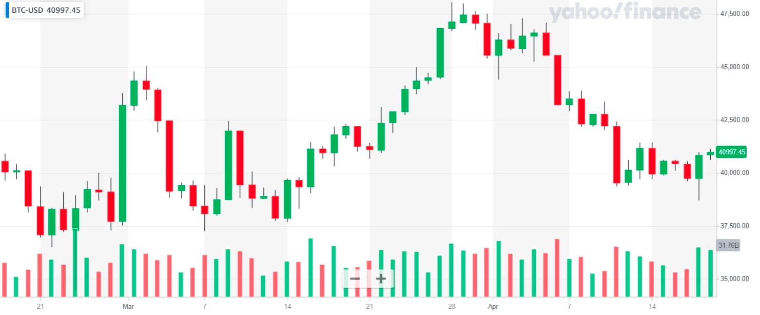加密货币和美股的K 线图,绿色代表上涨、红色代表下跌;台股的K 线图,红色代表上涨、绿色代表下跌。