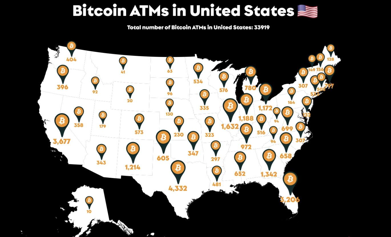 美国各地的加密货币 ATM 机数量一直在增加,截至 2021 年,ATM 机数量已超过 33,900 台。这些机器为希望购买或出售加密货币的人们提供了便利和可访问性。大多数机器归私人公司所有,通常位于当地商店和加油站;但是,Circle K 和沃尔玛等一些较大的公司也已开始安装它们。