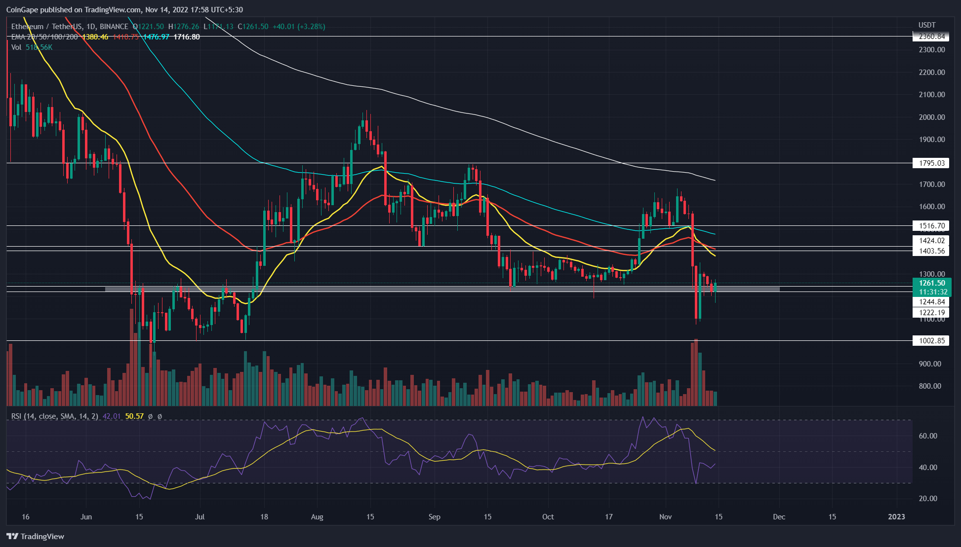 然而,与 20 天和 50 天 EMA 一致的上述阻力提供了一个可怕的障碍来克服。因此,如果市场情绪仍然看跌,则可能从 1400 美元的阻力位逆转将延长以太坊的跌势。