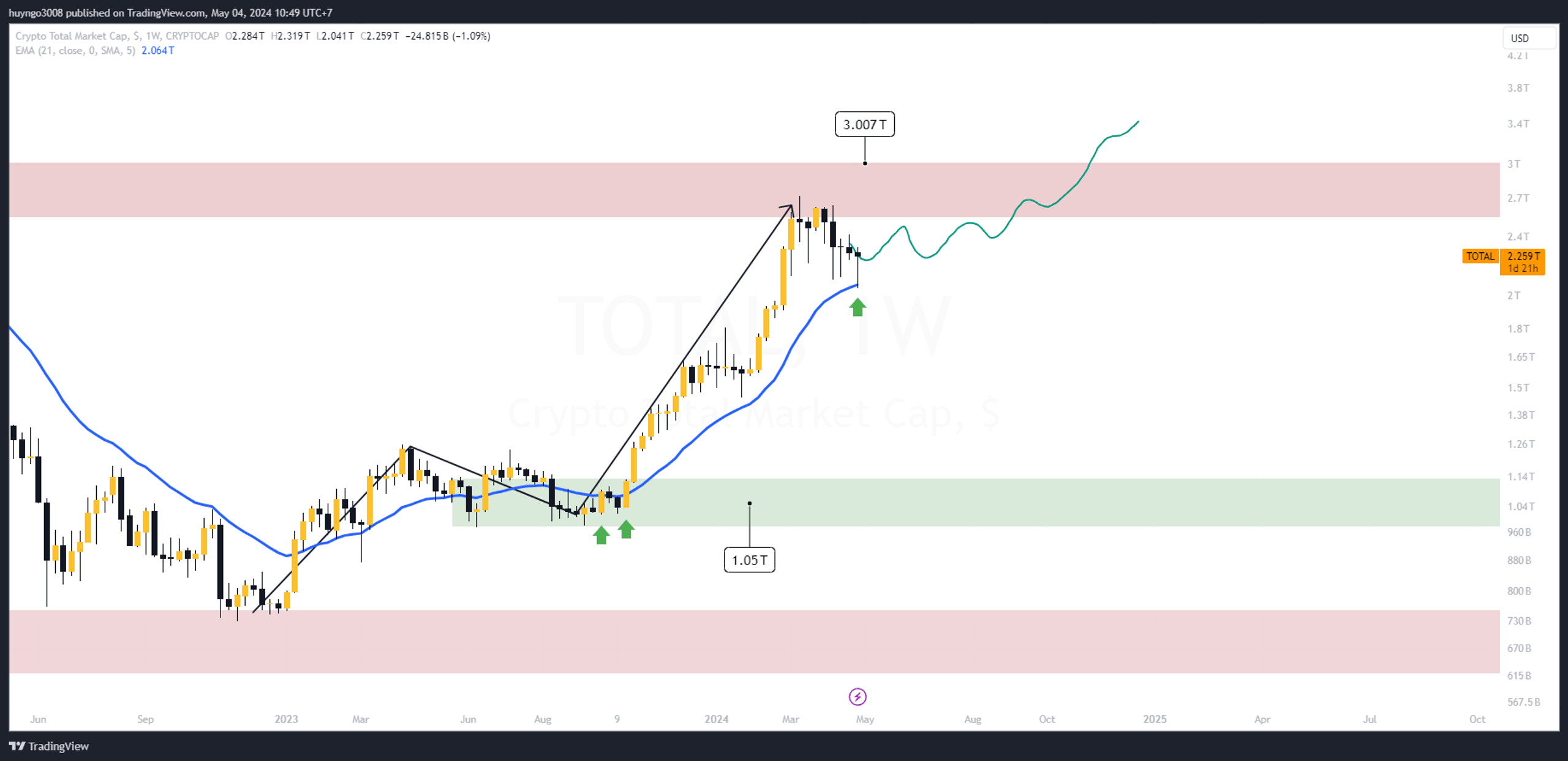 如果看涨格局得到确认,未来几个月市值将很快突破 3,000B 美元阻力位。