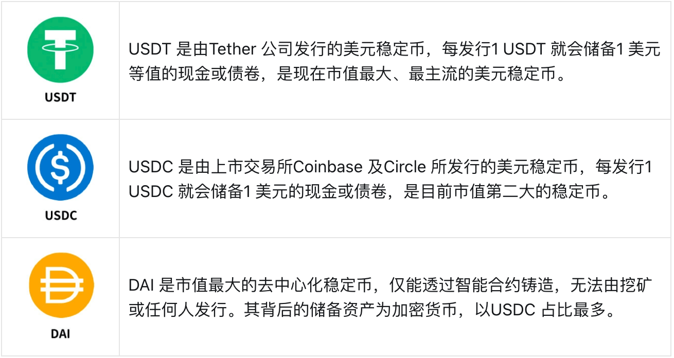 稳定币是一种藉由与某种稳定资产挂钩(例如法定货币或者是黄金)的加密货币,因为其波动较小,适合被用来当作日常交易使用。