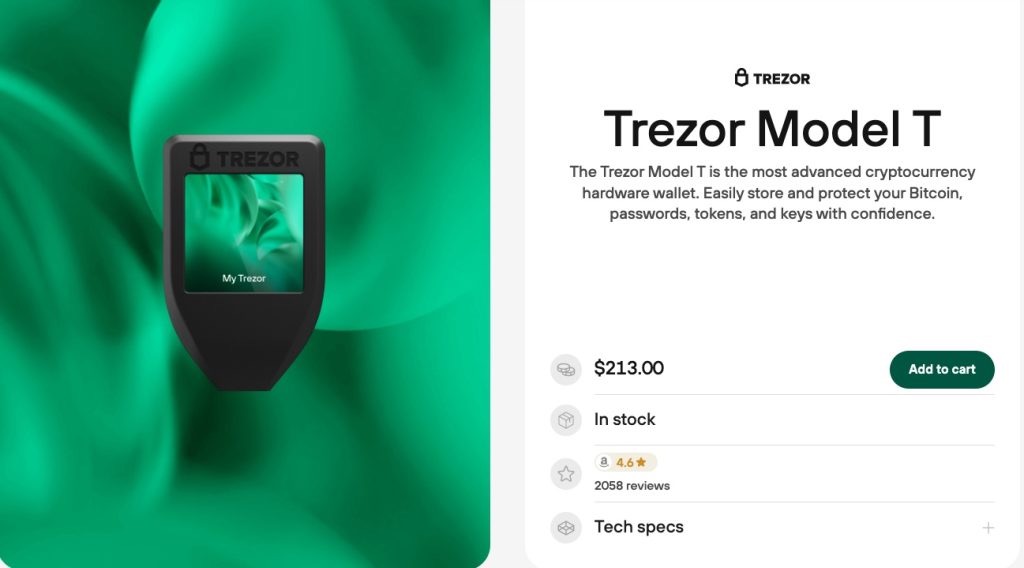 Model T 和 One 都是非常安全的设备,它们遵循与 Ledger 类似的安全原则。 为了获得资金,物理设备必须存在,甚至仍然需要一个 pin 才能进入设备。 价格分别为 74.99 美元和 299,99 美元,较便宜和**选项都比 Ledger 的比较产品贵。