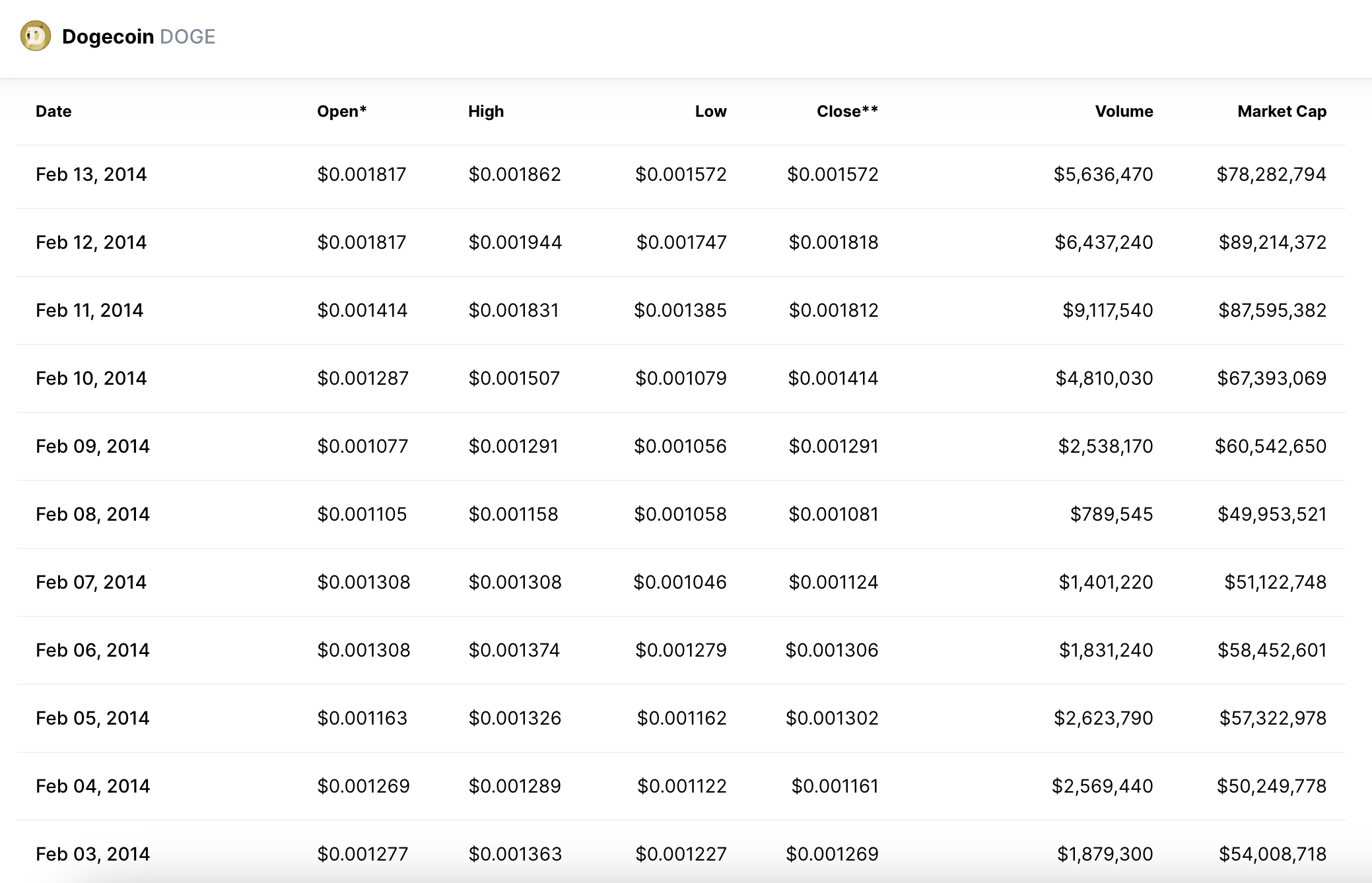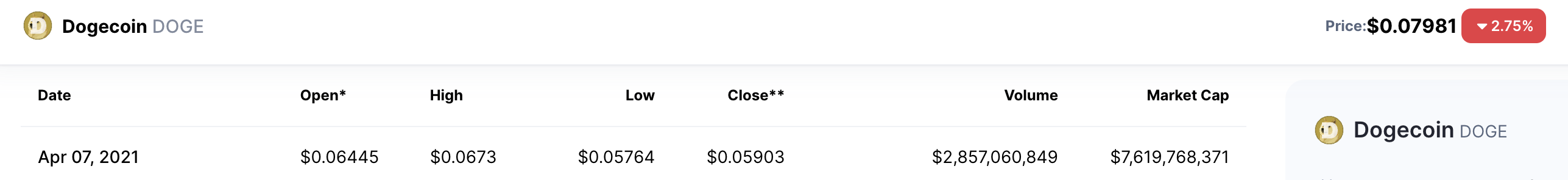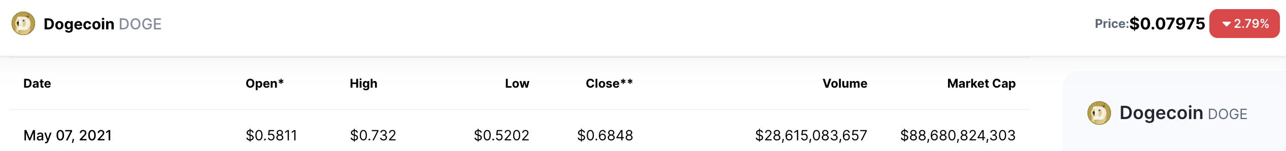 | DOGE 历史**价 (ATH) | 0.7376 美元 |