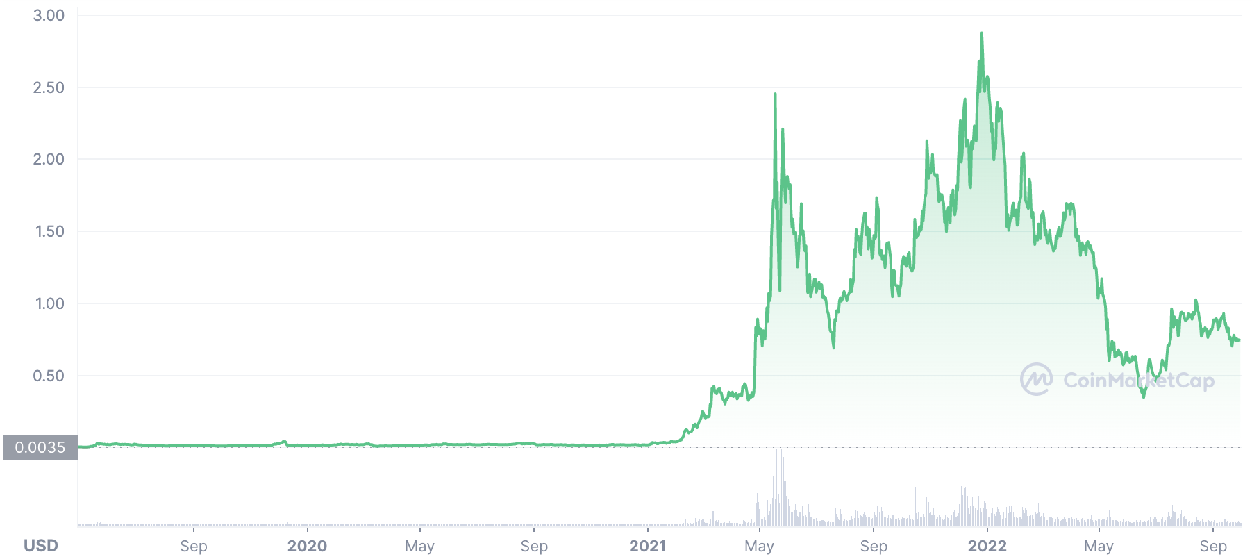 **在游戏中的实用性是使 Axie Infinity 成为一项有吸引力的投资的特征之一。该游戏目前每天有大约 280 万玩家和 36 亿美元的 AXS 交易。因此,AXS 可能是下一个在 2022-2023 年爆发的有前途的加密货币。