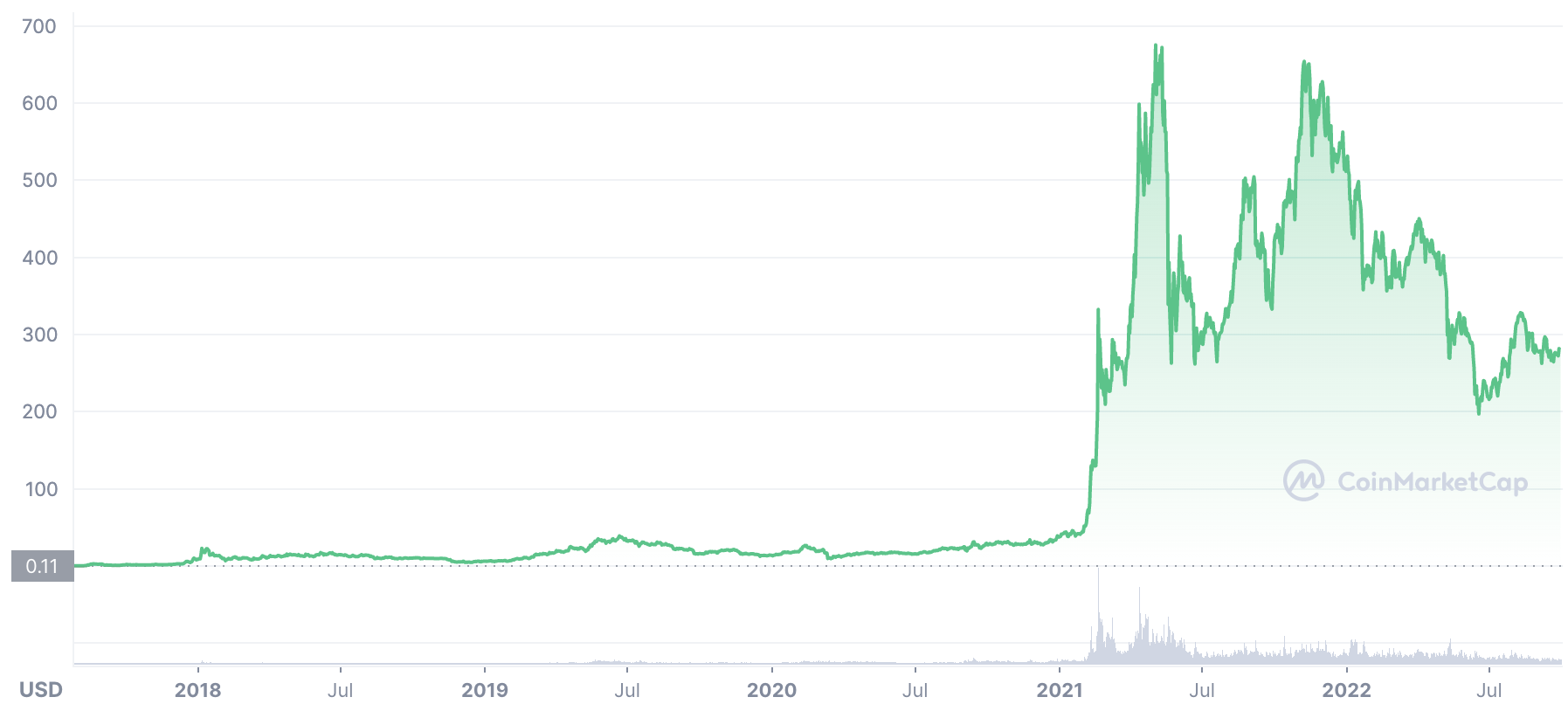得益于知名加密人士的支持,Solana 的未来看起来一片光明。Solana 于 2020 年**推出——当时 SOL 的起价为 0.77 美元。到 2020 年 2 月 1 日,其价格约为 100 美元——也就是说,该加密货币的价格在两年内上涨了约 13,000%。鉴于对以太坊替代品的需求不断增长,Solana 可以在接下来的几年中证明自己的作用。这可能会导致这种加密货币的价格在不久的将来出现更大的上涨。因此,我们可以肯定地说 Solana 是一种很有前途的加密货币。