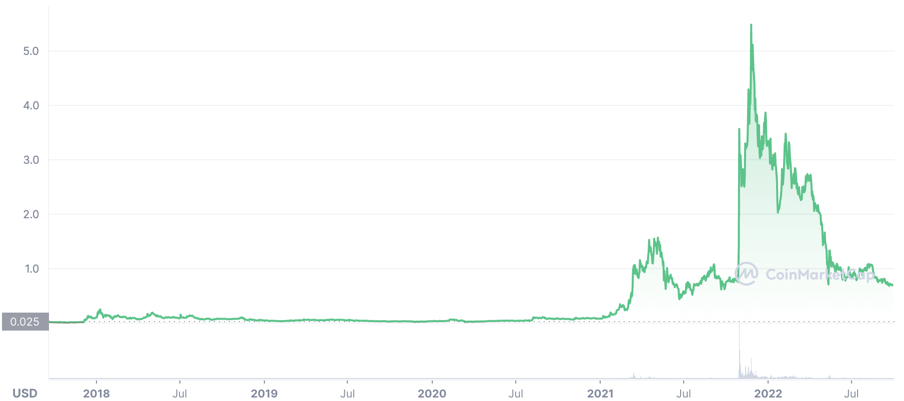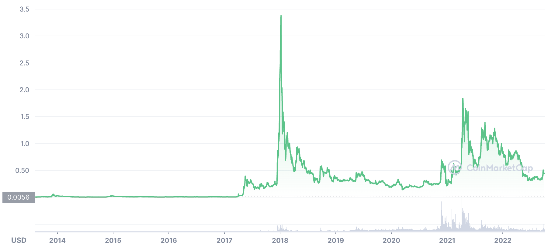 Cardano 是一个去**化平台,自 2017 年以来一直在开发中。从那时起,它取得了重大进展——2022 年,Cardano 采用了智能合约。该项目背后是密码学、工程和区块链技术领域的三大研发公司。这些特性使硬币对短期和长期投资都具有吸引力。