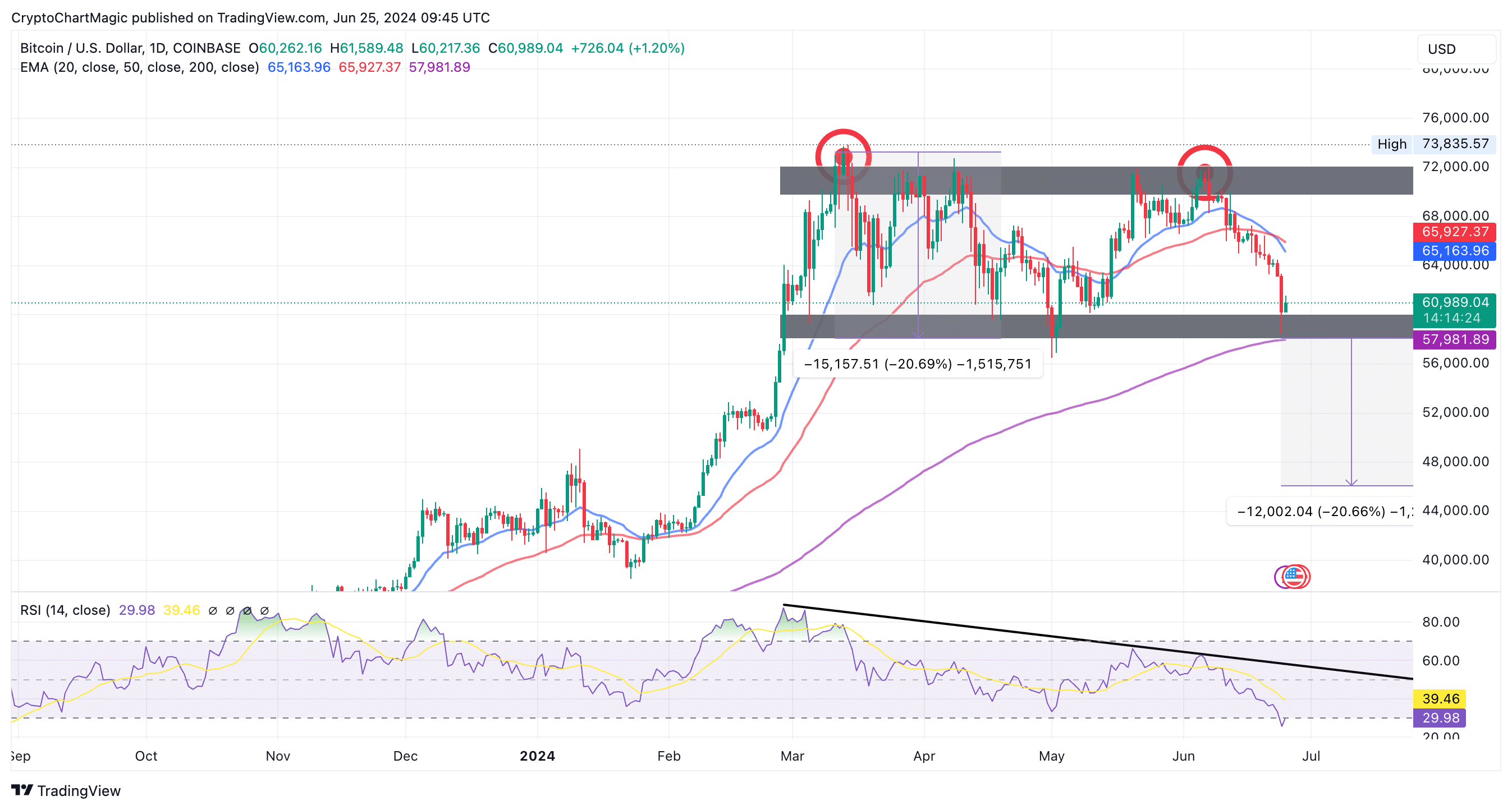 投资者预计比特币当日收盘价将突破 62,000 美元,为 6 月底前反弹至 70,000 美元铺平道路。然而,由于日线图上出现死亡交叉模式,风险可能会飙升,并**导致跌破 60,000 美元。