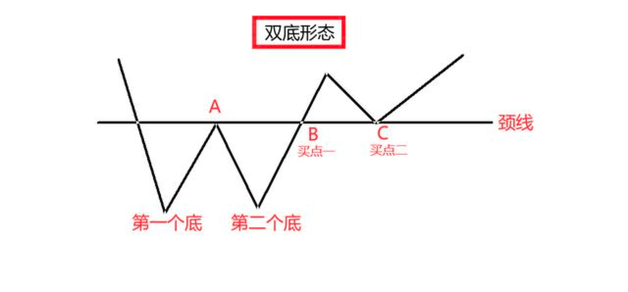 “双底形态”通常在一个明确的下跌趋势中形成,其特征是价格两次下跌至相近的低点,中间有一次反弹。这两个低点构成了“底”部,中间的高点则构成了“颈线”。当价格突破颈线时,这一形态就被确认为“双底”,预示着价格可能会进一步上涨。