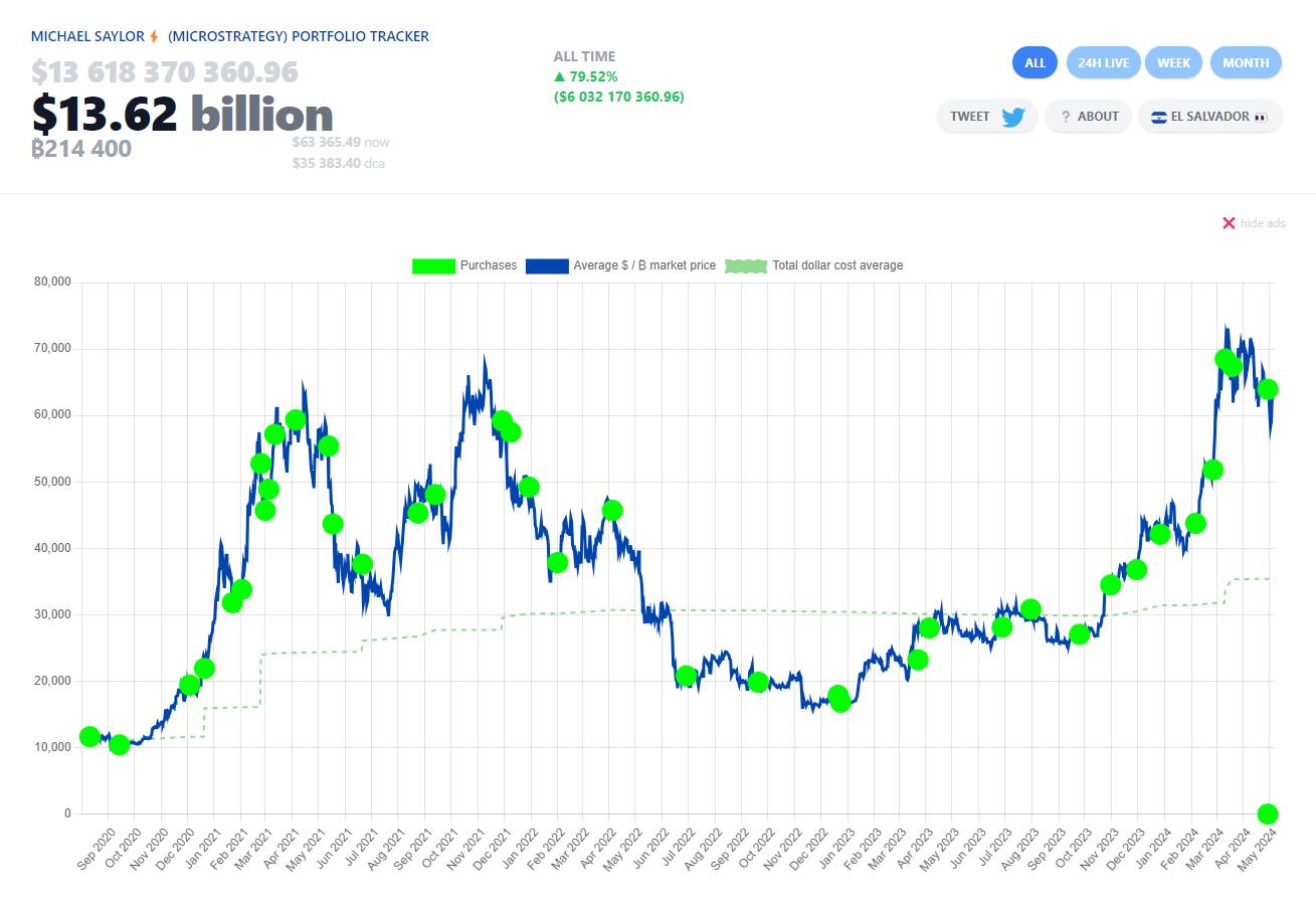 MicrosStrategy 比特币购买历史记录。来源:Saylor Tracker(2024 年 5 月 7 日)