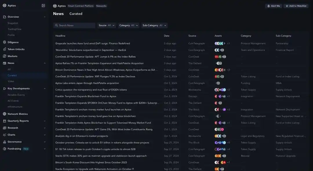 Messari 上的 Aptos:**新闻仪表盘