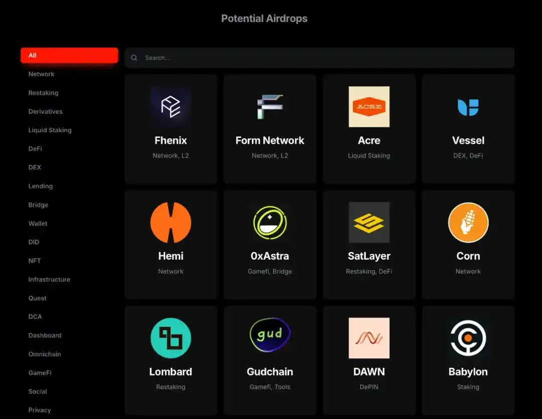 虽然空投的关注度比起一年前有所下降,但对许多用户而言,它依然是被动收入的重要来源。前文提到过 CryptoRank 的工具套件可以帮助用户发现空投。以下是一些适合空投猎人的平台。