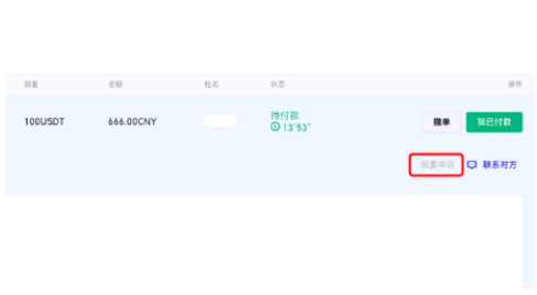 2、针对目标订单点击“我要申诉”按钮,启动申诉程序。