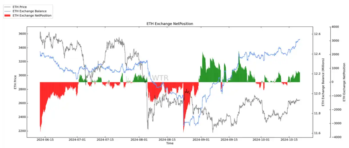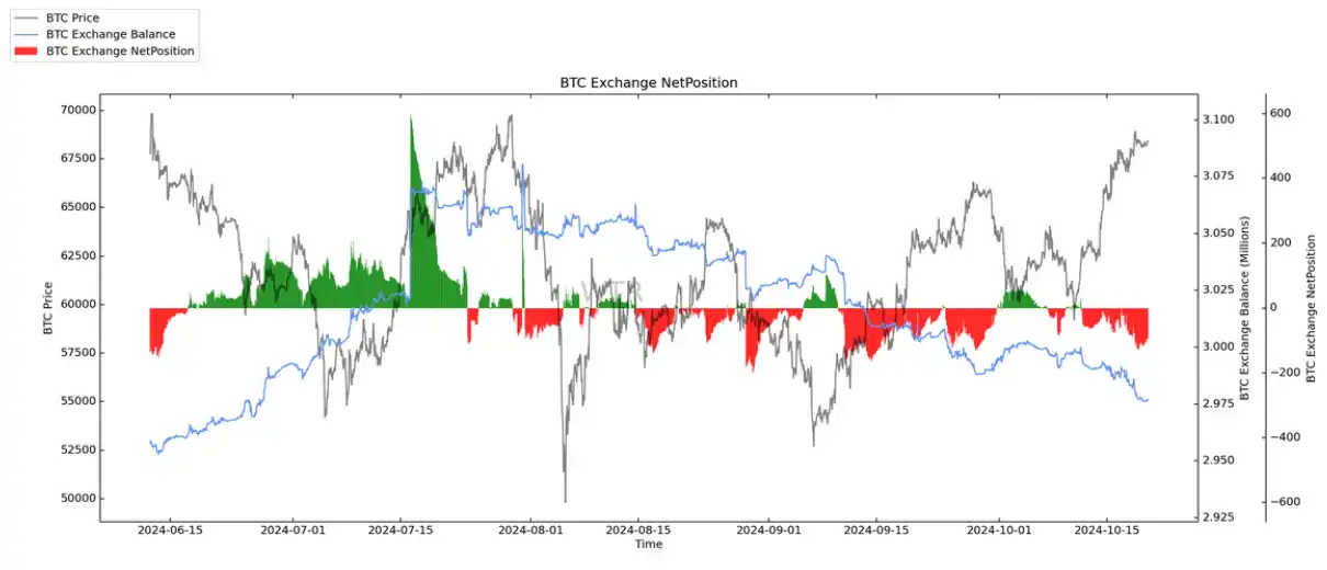 4. 交易所净头⼨整体呈现整体 BTC 持续流出,ETH 持续流⼊。