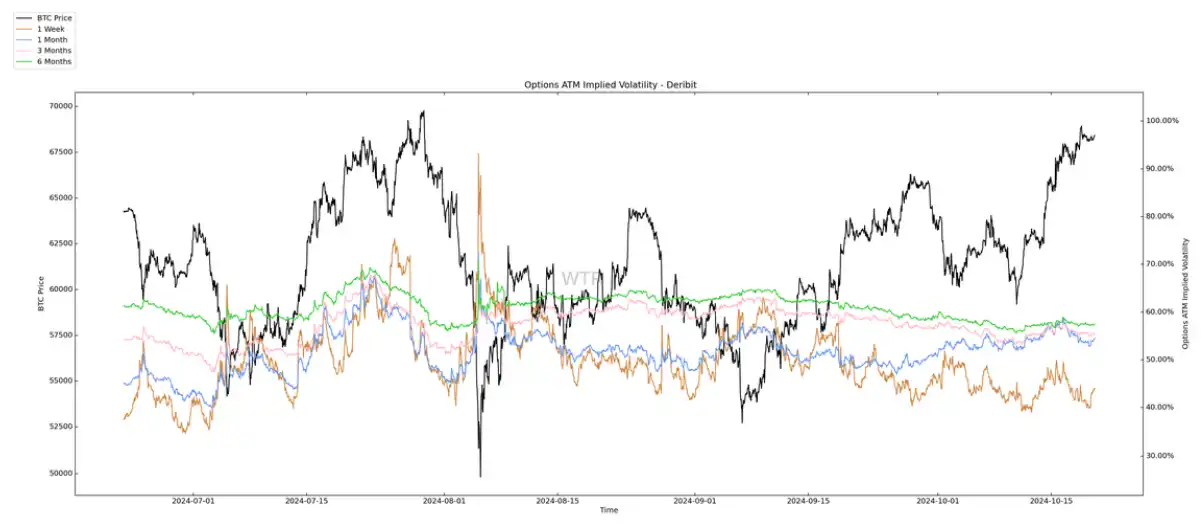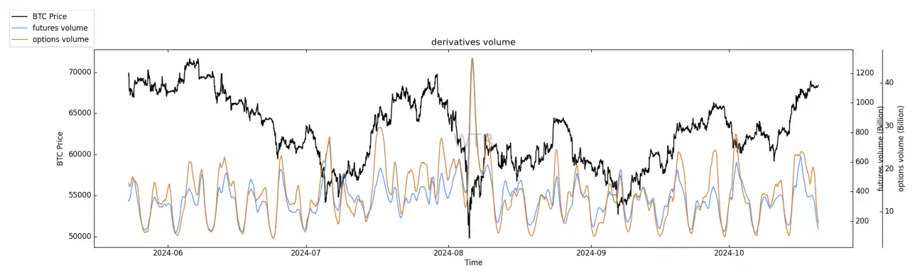 衍⽣品⻛险系数提⽰到达红⾊区域,再结合本周仍观测到在当前价位 68K 附近有⼤量的筹码换⼿和累积,预期在当前价位⼤幅度的回调概率较低。
