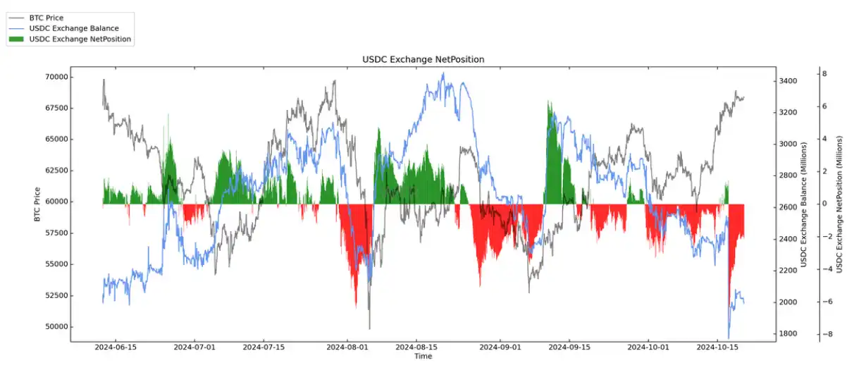 USDC⽤⼾的参与意愿下降,⽬前处于购买⼒较弱的状态。可能美盘机构对当前⾏情有较⾼的担忧,或是他们⽬前没有太⼤的购买动作。