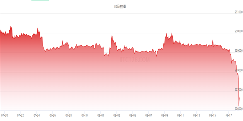 据**数据显示,比特币今日**价格为:$26446≈ ¥19.26万,今日价格下跌,-7.59%,24小时**价格为:$28651,24小时**价格为:$25649,24小时成交量:125.38万,24小时成交额:$332.01亿。